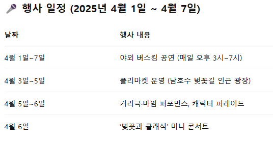 🎤 행사 일정 (2025년 4월 1일 ~ 4월 7일)